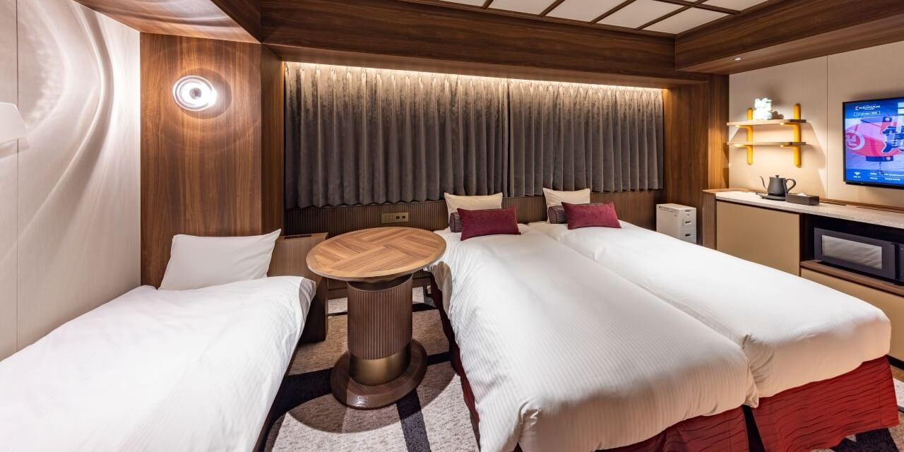 舒适双床房面积达 26 平方米,是您结束一天旅程后放松身心的理想选择。 房间配有两张单人床和一张沙发床,最多可容纳三位客人,例如朋友或小型家庭。 在浅草独有的经典「大正浪漫」氛围中,尽情享受轻松惬意的假期。